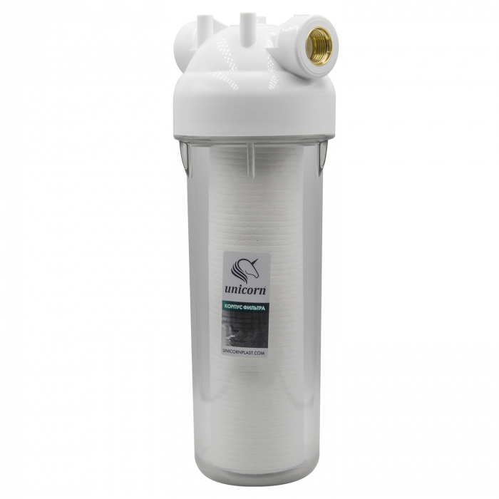 Натрубный фильтр 1/2, для холодной воды 10" с прозрач. корпусом, UNICORN (РФ)