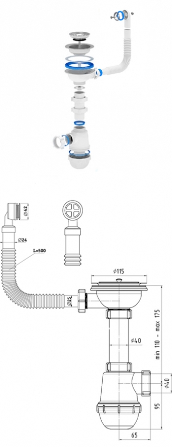 Сифон Е115 выпуск нержавеющая сталь